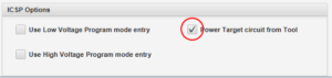 Settings: Make sure you enable ‘Power Target circuit from Tool‘ (Settings -> Advanced Mode -> Power). This will set 5V to the seat board. Make sure your PIC can actually handle 5V, otherwise you may burn your IC to death. Check the datasheet of the PIC for the allowed voltage range. Without the ‘Power Target circuit from Tool’-setting programming will fail.